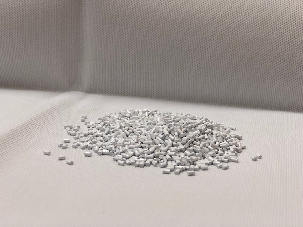 O masterbatch branco é produzido utilizando em sua fórmula o pigmento inorgânico Dióxido de Titânio (TiO2). Esse pigmento é hoje o mais utilizado no mundo e tem a característica de dispersar a luz visível e assim dar brilho e alvura ao plástico;